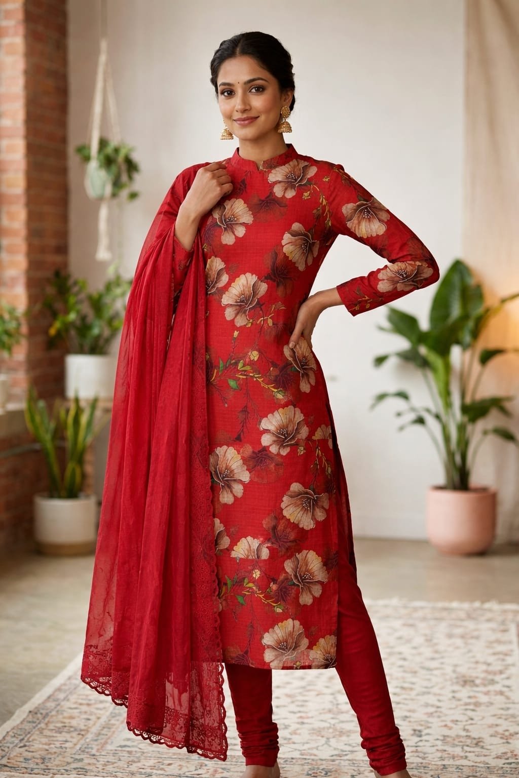 - Crinkle Solid Plain Dyed Chikenkari Dupatta.